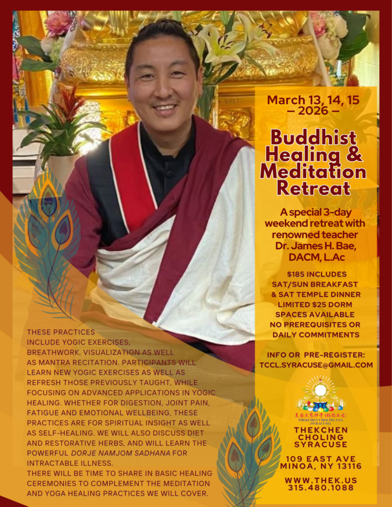 Dr. James Bae Leads Weekend Healing Retreat at Thekchen Choling Syracuse, March 13-15